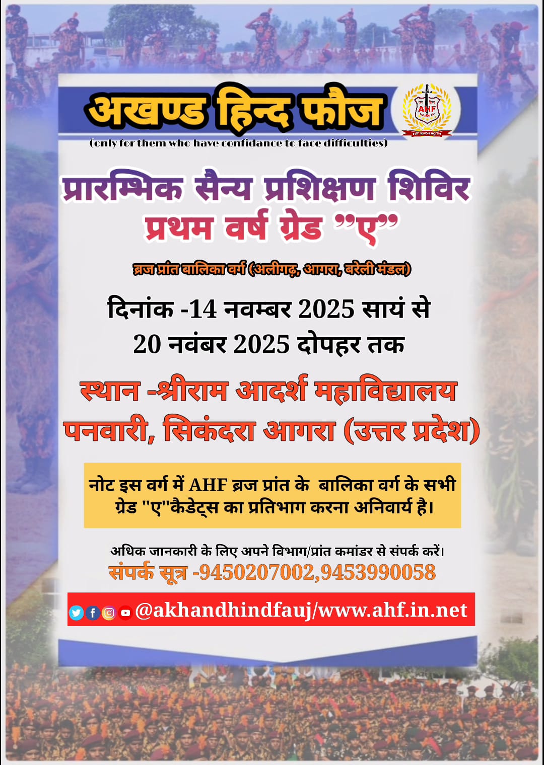 अखण्ड हिन्द फ़ौज विशेष रूप से बच्चों में कैरियर के प्रति उत्साह व शारीरिक, मानसिक, व बौद्धिक विकास हेतु